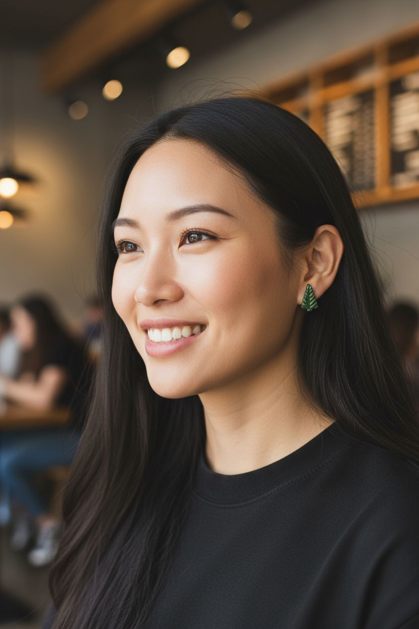 Add a touch of holiday spirit with these adorable Christmas tree studs. Lightweight and comfortable, they effortlessly brighten any outfit, making them the perfect festive accessory for the season.